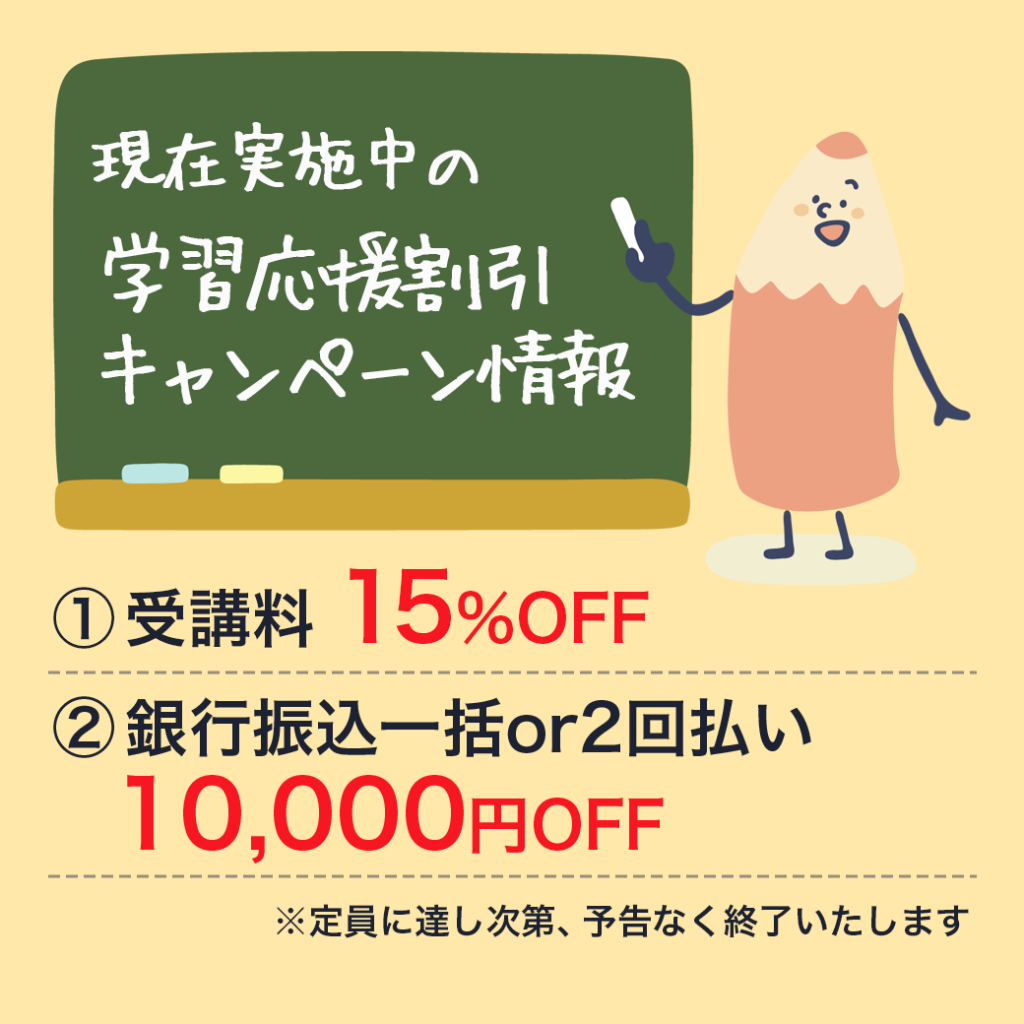 ※事務手数料を除く - 銀行振込一括・2回払いの場合:さらに1万円OFF