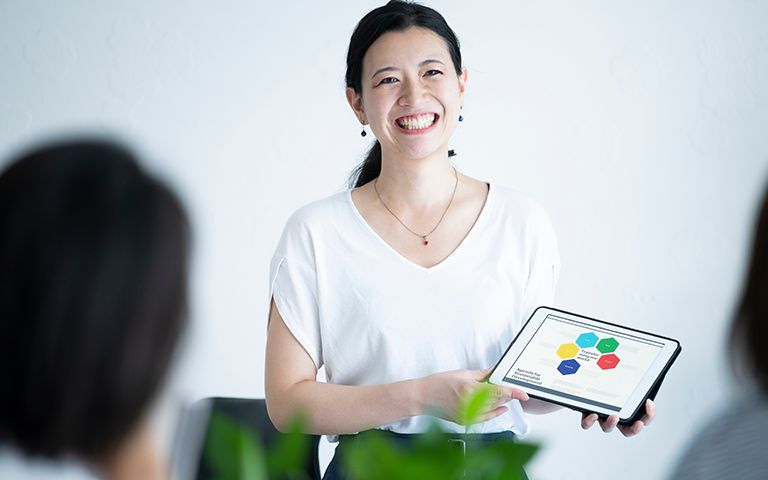 実案件のワークフローに沿って学習することで、見積書や提案書の作成方法を習得。提出のタイミングまで理解でき、長年の経験を活かして即座に仕事に活かせています。